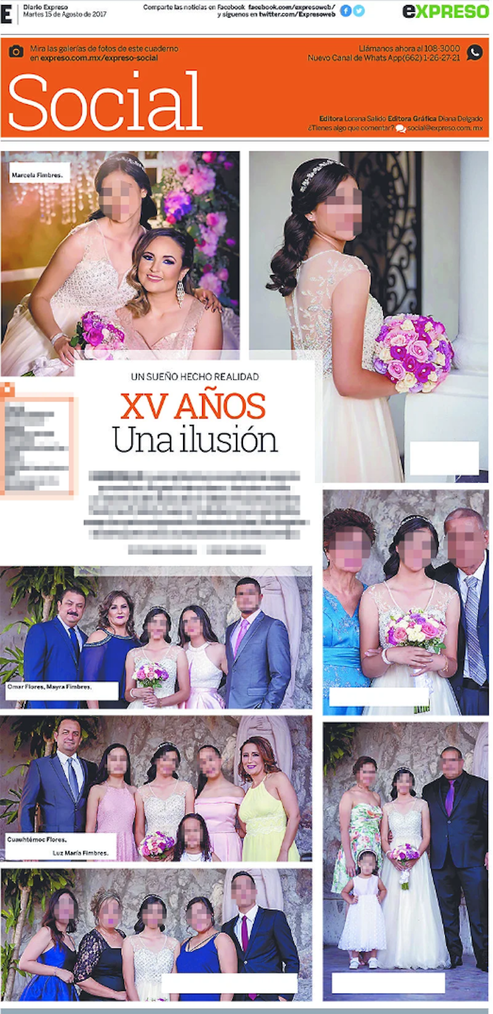 Ambos aparecen junto a la familia Fimbres Ibarra en la publicación del 15 de agosto de 2017 de la sección de Sociales del periódico Expreso, el segundo de mayor tiraje a nivel estatal en Sonora, durante la celebración de los XV años de la hija de Marcela.