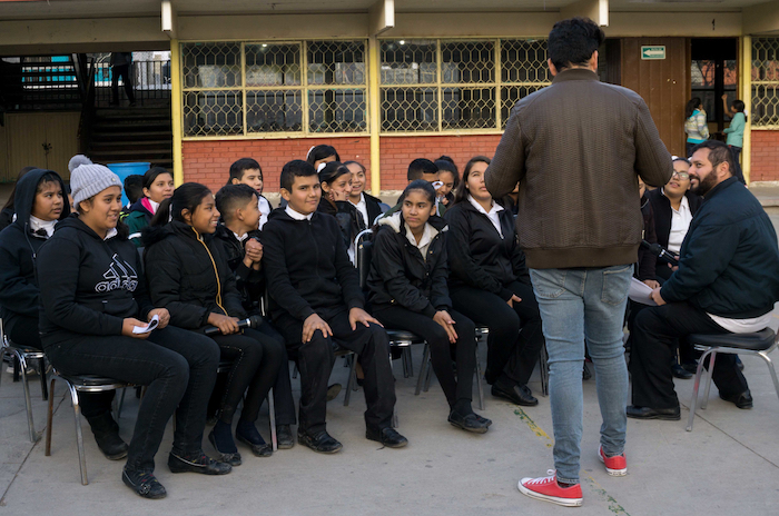 “Es muy padre porque son experiencias que no habíamos tenido aquí en la secundaria. Nunca se había hecho algo así”, dice Valeria que ha tenido que salir de la clase de química para atender la entrevista.