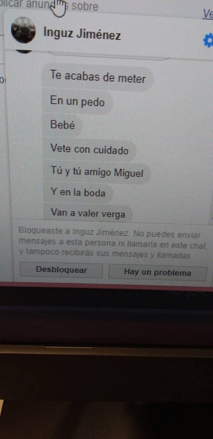 “Te acabas de meter en un pedo, bebé. Vete con cuidado. Tú y tu amigo Miguel y en la boda van a valer verga”, escribió el agresor.