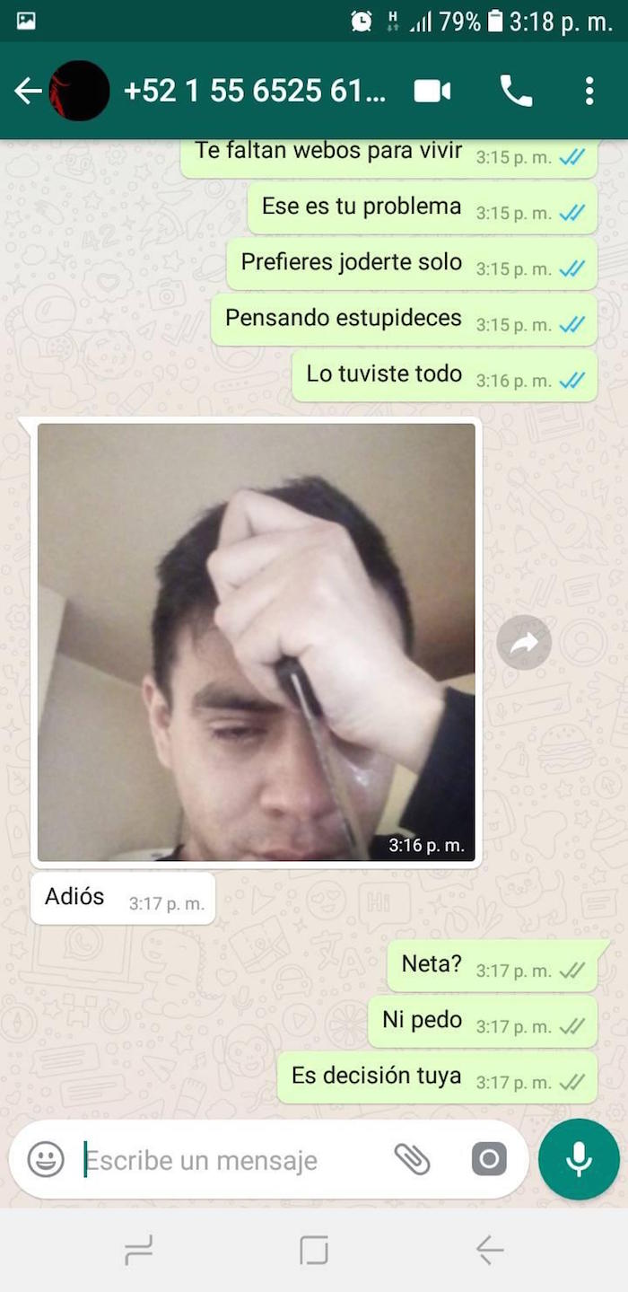 A través de redes sociales, la víctima de acoso denunció que el agresor también aseguró que se quitaría la vida y hasta mostró una fotografía en la que aparece con un cuchillo.