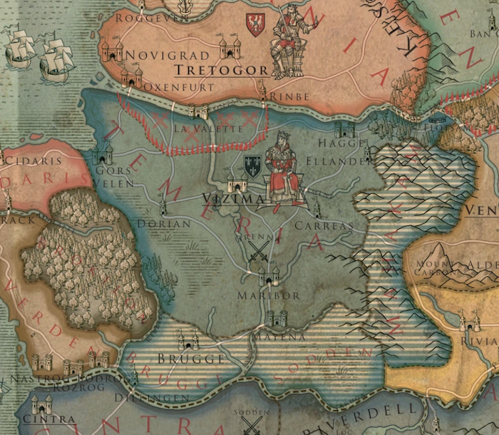 La capital del reino es Vengerberg, el lugar de origen de Yennefer, que tras completar su educación como bruja en Aretuza, es asignada como consejera del rey.