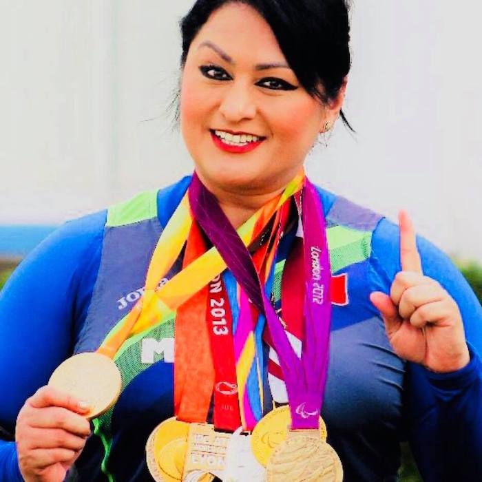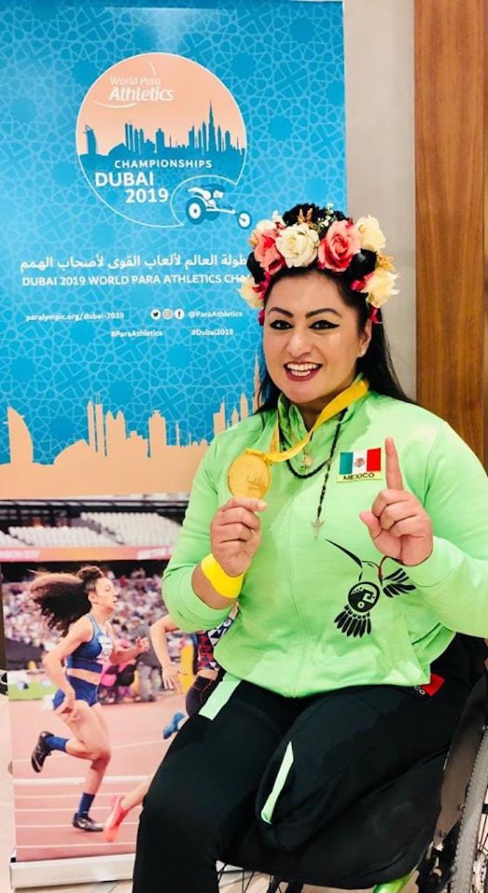 "Soy tetracampeona panamericana, cuatro veces ya en el número 1 de los parapanamericanos, iniciando con Río 2017, con récord del mundo además, después Beijing, mis primeros juegos paraolímpicos, mi primera medalla de plata y, luego, Londres con oro y doble récord del mundo, después vino Río 2016, también con oro y ahorita ya calificamos a Tokio en el pasado mundial en Dubai, fuimos la única medalla de oro en lanzamiento bala”, cuenta.