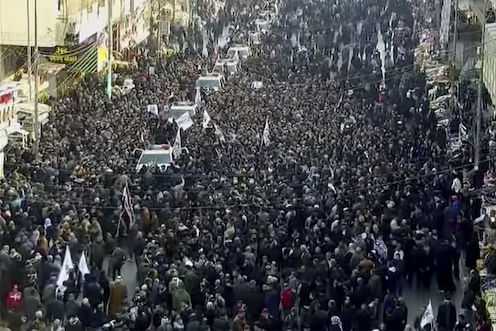 Bagdad, Irak, 4 de enero (EFE/AP) — Al grito de “Estados Unidos es el gran Satanás”, miles de personas participaron el sábado en Bagdad en el cortejo fúnebre del principal General de Irán y de líderes insurgentes iraquíes fallecidos en un ataque aéreo estadounidense en la víspera.