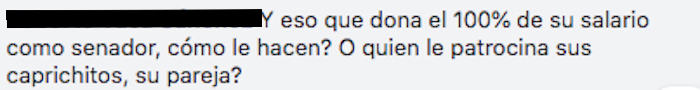 “Dono el 100% de mi sueldo como Senador todas las quincenas. Vivo de las regalías de mis despachos y las ventas de mis libros. Yo no vengo a costarle al pueblo” se lee en su biografía de Facebook.