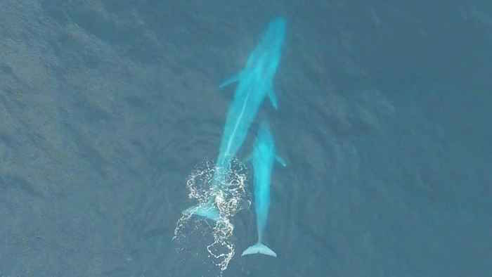 Vista aérea de ballenas azules en Nueva Zelanda. Foto: especial.
