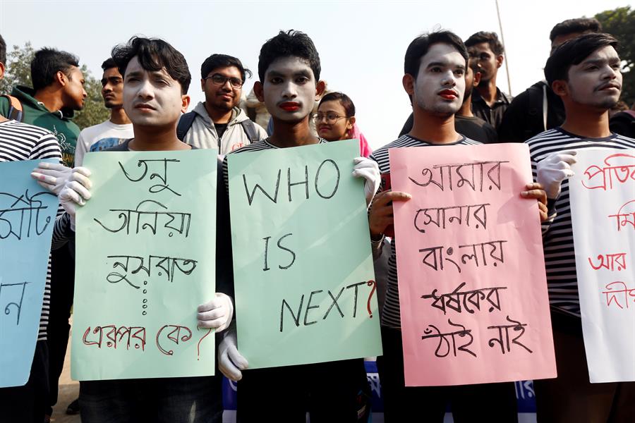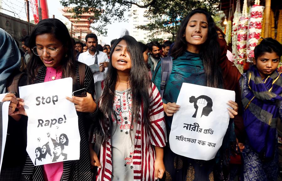 "La violación es el más atroz de todos los crímenes. Los criminales deben ser detenidos y llevados ante la Justicia; de lo contrario, continuaremos con nuestra protesta", advirtió Anika Anju, otra estudiante de la Universidad de Dacca.