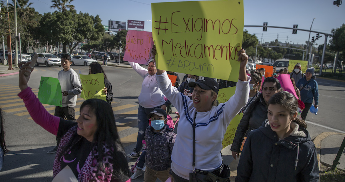 Con pancartas y lonas exigieron al secretario de Salud cumplir con su promesa de dotar al 100 por ciento de medicamentos.