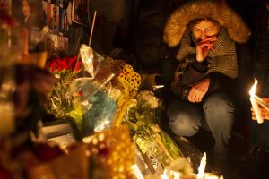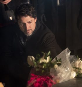 Trudeau participó junto con centenares de personas en la vigilia celebrada frente al Parlamento canadiense en Ottawa pese al intenso frío. El Primer Ministro canadiense depositó un ramo de rosas blancas junto a la Llama del Centenario, un monumento que conmemora el centenario de Canadá.