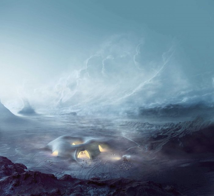 Esa pasión por el realismo se ha mantenido y potenciado con los años. Los diseños y memorias de los proyectos de De Kastelier son tan sugerentes como realistas. Describen cómo robots autónomos equipados con impresoras 3D esculpirán estructuras a modo de cuevas. Estos caparazones serán creados con basura de plástico (quién nos iba a decir que la basura no solo no destruiría nuestro planeta, sino que nos permitiría conquistar otros).