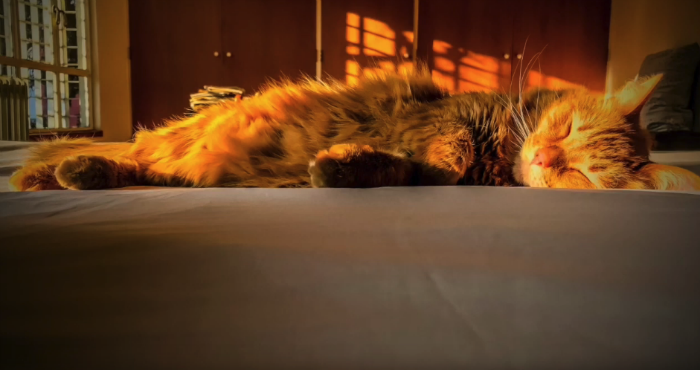 En invierno, la ventana lo hace vivir más por dentro. Este gato, cuando duerme, es casi una llamarada.