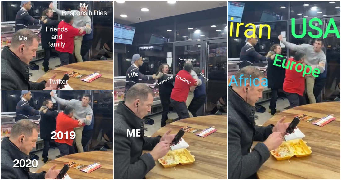 Los internautas alabaron la impasibilidad del hombre, quien se mantuvo impertérrito en medio del caos total desatado en el restaurante Ken’s Kebabs sin mostrar ningún interés en lo que estaba ocurriendo a su alrededor.