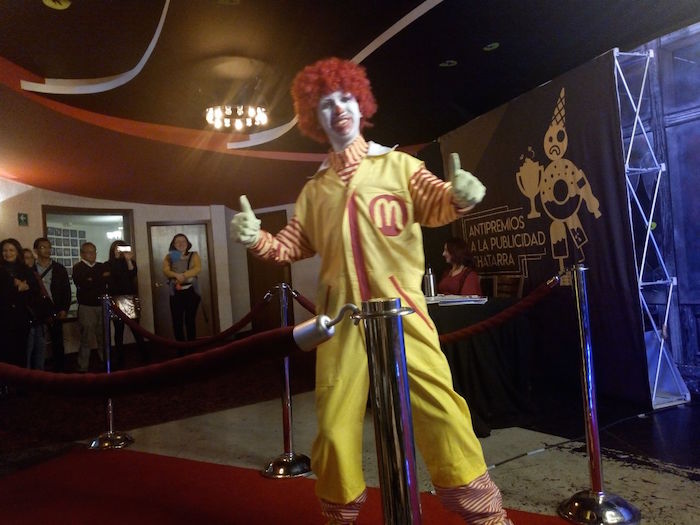 "La publicidad dirigida a niños es una de las estrategias más eficientes que utilizan las marcas, pero es peligrosa porque fomenta el consumo de productos que por su alto contenido calórico pueden generar diabetes infantil", dijo mientras desfilaban en una alfombra roja a la entrada del Teatro Coyoacán, en la Ciudad de México, botargas de personajes como el Tigre Toño, Cheester Cheetos y un oso blanco, utilizados por Kellogg's y Coca-Cola para publicitar sus productos a niños.
