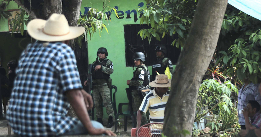 A las 7:30 de la noche vía mensaje, Portillo Mendoza informó que desde las 5:00 de la tarde los desplazados que se encuentran en Guayameo tenían retenidos a elementos de la Guardia Nacional, a quienes exigían que los acompañaran a recoger los cuerpos de 10 personas que fueron asesinadas en la irrupción en San Rafael.