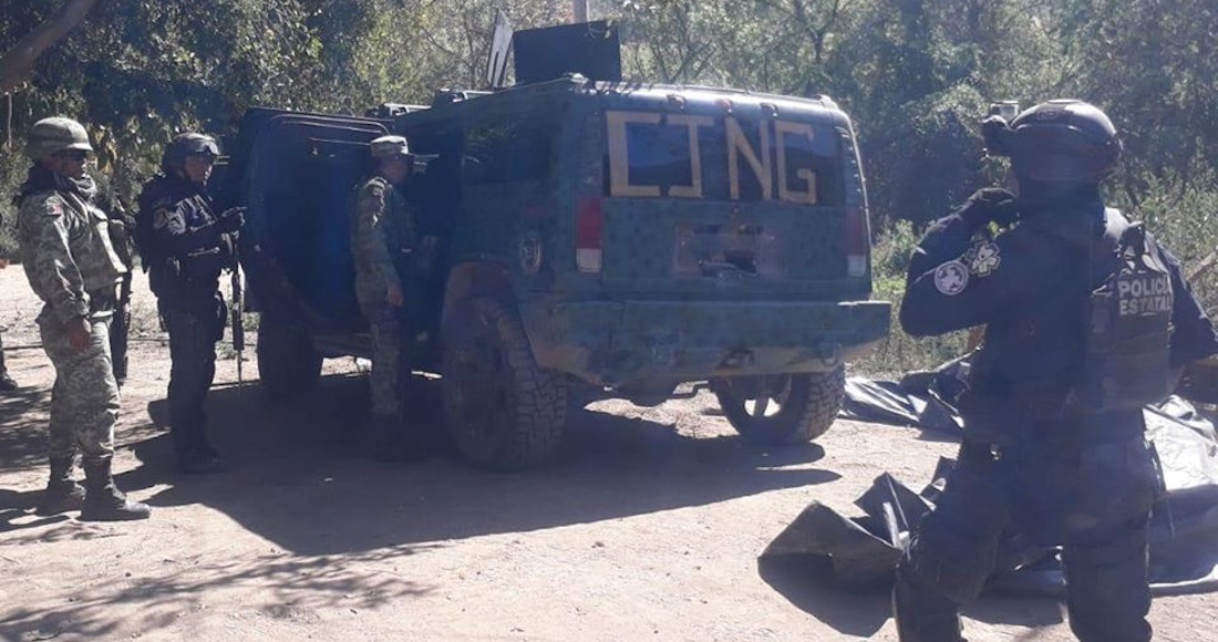 Dijo que en el recorrido realizado el martes 14 de enero, se localizaron en la proximidad de la comunidad de La Piedra, tres vehículos abandonados; una Hummer blindada color verde con puntos negros, con las siglas CJNG, así como una camioneta Jeep y otra GMC ambas calcinadas y con reporte de robo.