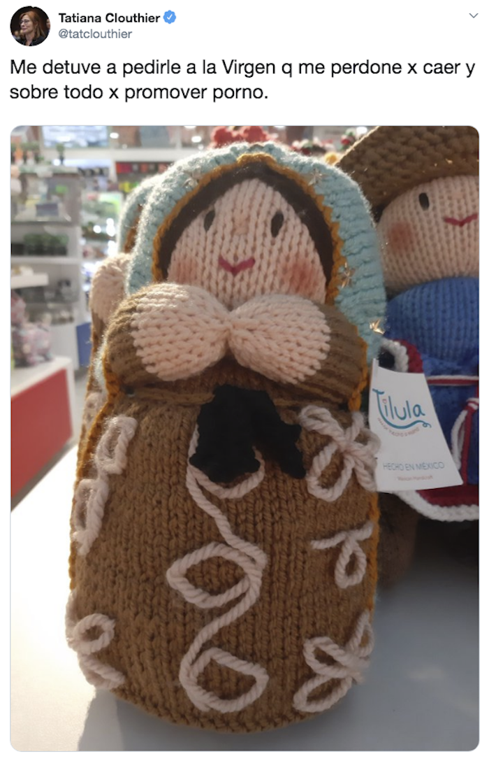 “Me detuve a pedirle a la Virgen que me perdone por caer y sobre todo por promover porno”, escribió después la política mexicana.