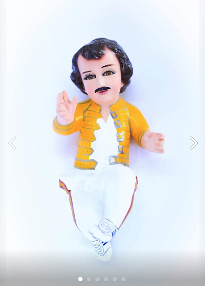 Las imágenes que circulan en redes sociales provienen de una página de Facebook donde se anuncian varios artículos en venta en el estado de Puebla, ahí muestran a la figura de yeso que representa al niño Dios caracterizado de Joker, Freddy Mercury, vocalista de Queen; Leono, personaje de Los Thundercats; Superman y Goku. Los precios rondan entre $500 y $650 pesos.