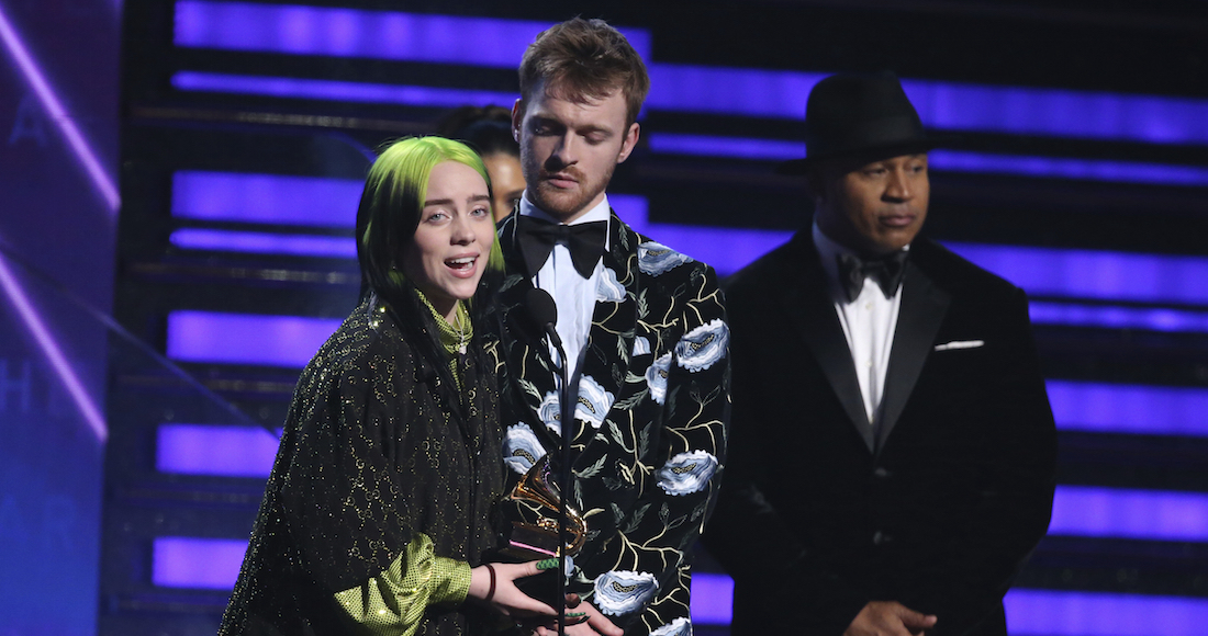Al ganar el gramófono al álbum del año, su hermano Finneas recordó que ese aclamado trabajo, su debut discográfico, fue concebido en un cuarto de su vivienda familiar.