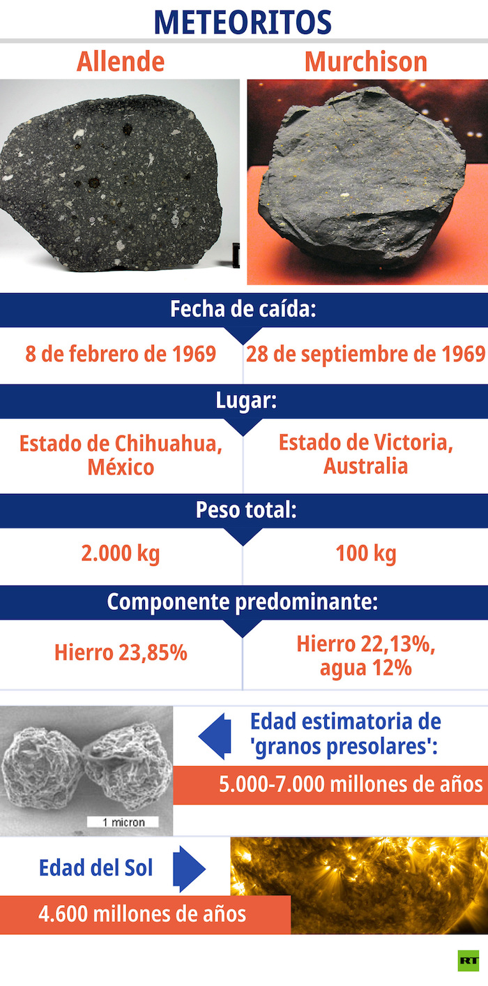 Ciudad de México, 1 febrero (RT).- Una revelación científica acerca aún más a dos meteoritos que impactaron en la Tierra en 1969 en dos continentes distintos: Murchison, en Australia, y Allende, en México. Una inclusión rica en calcio y aluminio en el bólido mexicano contiene los "granos presolares": esos mismos que estuvieron en el foco de interés mediático hace dos semanas.