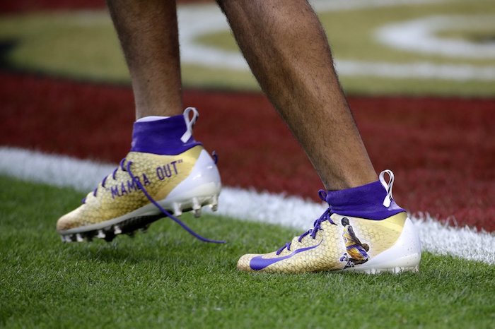 Demarcus Robinson de los Kansas City Chiefs usa tacos en honor a Kobe Bryant. Foto: Seth Wenig, AP