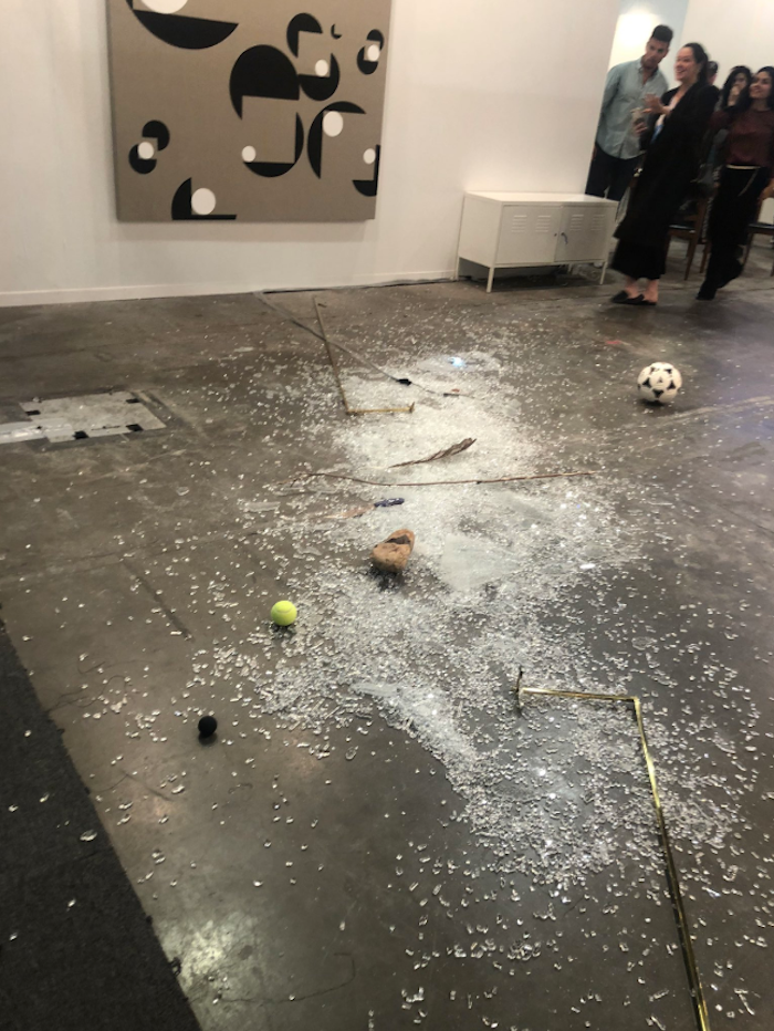 Ciudad de México, 12 de febrero (Vanguardia).– Valuada en 20 mil dólares, la pieza del artista mexicano Gabriel Rico se encuentra hecha añicos en el piso. Una pluma, una pelota de fútbol, otra de tenis, una rama y un cuchillo están en medio de los pedazos de cristal en el que se encontraban incrustados cuando la pieza se encontraba en su estado original, justo antes de la que crítica de arte Avelina Lésper intentó colocar cerca de la obra una lata de refresco para “tomar una foto.”