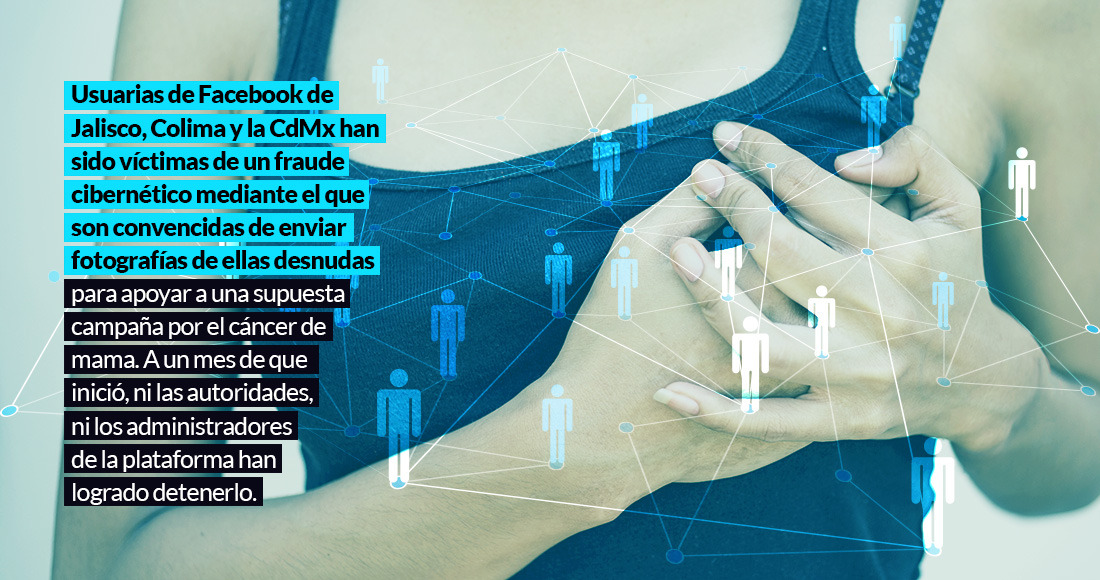 #MetaDatos | Decenas de mujeres, la mayoría profesionistas y activistas, fueron víctimas de delincuentes cibernéticos que con engaños lograron que compartieran fotografías de ellas desnudas y, en el peor de los casos, con contenido erótico para una supuesta campaña de apoyo a mujeres con cáncer de mama; además les robaron sus cuentas de Facebook.