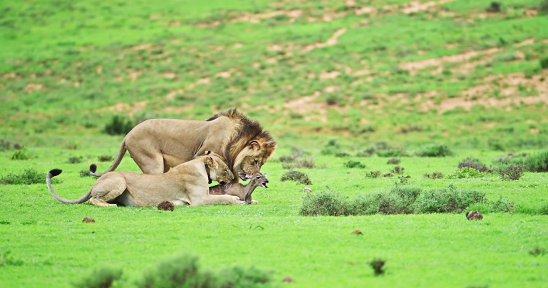 VIDEO FUERTE: Una pareja de leones juega con la cría de un antílope antes de acabar con su vida