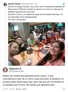 Luego de que en redes sociales se difundiera la desaparición de Claudia, algunos usuarios criticaron a la joven por "estar sola a esa hora" y ponerse en peligro.