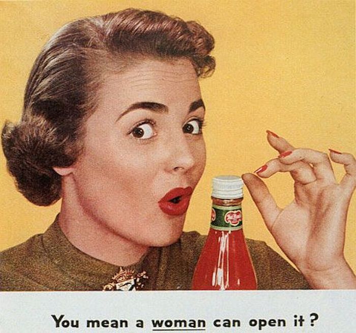 Es completamente mal visto, en esta época, que una mujer estudie una carrera o pretenda balancear el trabajo con los deberes del hogar. Las mujeres no saben manejar, no pueden abrir una botella de catsup por sí solas, son incapaces de sobrevivir sin un hombre que las rescate de todos sus problemas, no entienden nada de política ni de deportes. La mujer estereotípica es la mujer con delantal de todos los comerciales, es Lucy (de I love Lucy).