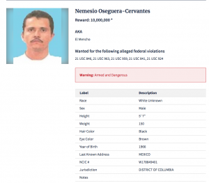 En Estados Unidos, “El Mencho” es señalado como “el número dos” del Cártel Jalisco Nueva Generación (CJNG) y está acusado de haber distribuido cocaína y metanfetaminas en su territorio entre 2007 y 2017, además del uso de armas.