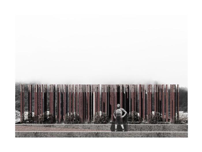 Paralelamente a la investigación de Yuri Herrera, el trabajo que la Fundación Arturo Herrera Cabañas con el Comité de Preservación y Conservación del Centro Histórico de Pachuca, comenzaron desde hace varios años en el centro comunitario de la localidad; detonó una sinergia que atrajo a la Presidencia Municipal y a la Universidad La Salle. De estos flujos surgió la iniciativa de crear un memorial que diseñó mi hermano Julio, todavía estudiante de arquitectura. La obra busca ligar la memoria con el territorio a través de la unión de diferentes elementos como la montaña, los muros de la mina y el memorial. Y así, hacer ver que “existe un paisaje entre lo que el memorial y la historia nos dejan ver”.