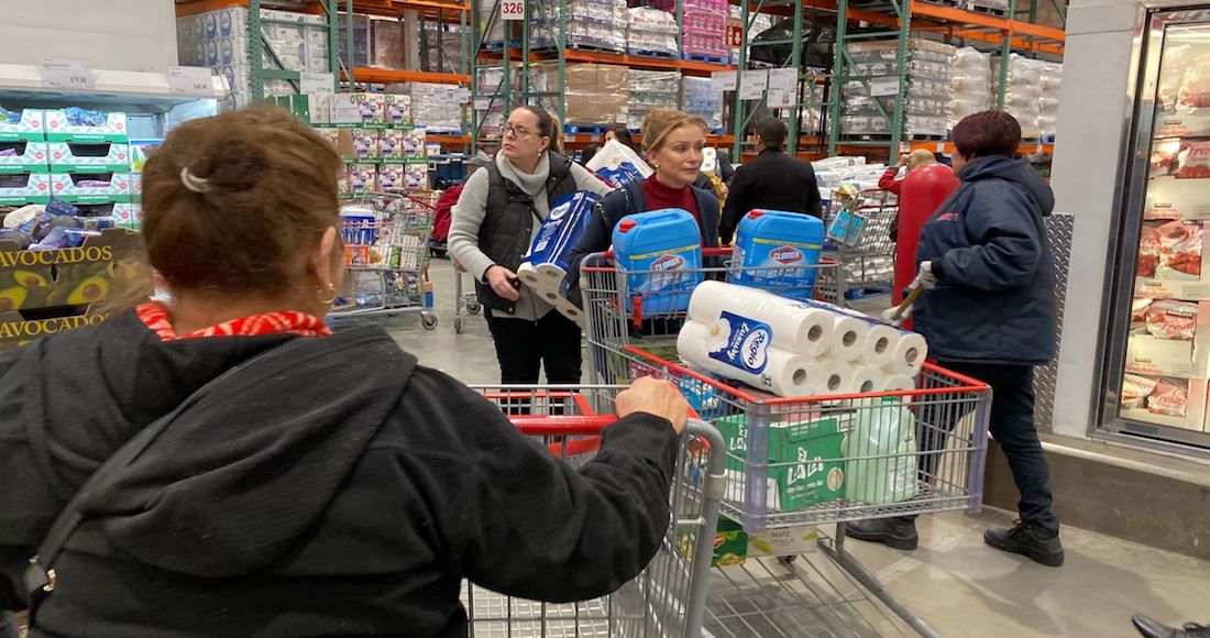 En tanto, el agua embotellada, algunos alimentos y el papel higiénico comienzan a escasear, por lo que hay tiendas que solo permiten llevar dos paquetes de este último producto por persona.