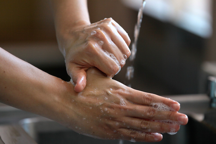 Tras mojarse las manos con agua potable, hay que cubrir toda la superficie de palmas, dorsos y dedos con una película de jabón. Foto: Mario Jasso, Cuartoscuro.