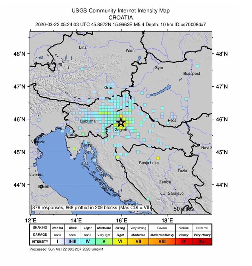 Según las autoridades croatas, el epicentro del temblor fue a 7 kilómetros al norte de Zagreb, a una profundidad de tan solo 10 kilómetros, lo que explicaría los fuertes daños en numerosos edificios del centro de la ciudad.