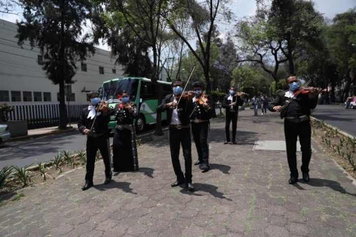 Mariachis llevan serenata al INER para personal médico que sigue trabajando en medio de la contingencia por el #coronavirus.