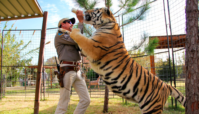 Los leones y, principalmente los tigres, que se ven en la docuserie son mostrados como figuras tan majestuosas como tristes, mientras que el centro de Joe Exotic aparece como un roadside zoo, una especie de zoológico de mala muerte en el que los visitantes pueden ver a los animales desde sus vehículos.