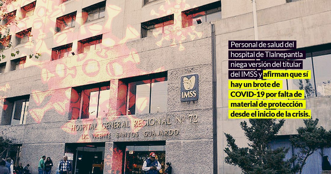 Durante las últimas tres semanas, el personal del Hospital General Regional (HGR) N° 72 en Tlalnepantla, Estado de México, enfrentó la Fase 2 de la pandemia por COVID-19 sin los insumos básicos. Apenas el 7 de abril, las autoridades acordaron hacerles llegar el Equipo de Protección Personal.