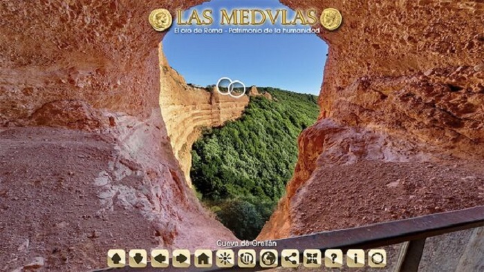 Las Médulas, en el Bierzo de León, fueron la mayor mina de oro a cielo abierto del Imperio Romano y su explotación dio comienzo ya en el siglo I a.C., cuando Roma conquistó definitivamente los pueblos del norte de la península. Este tour virtual te dejará ver el paisaje desde sus miradores y adentrarte en algunas de sus cuevas más importantes, pudiendo admirar así cómo hace dos mil años se erosionaron y moldearon estas tierras rojizas en busca del preciado metal.