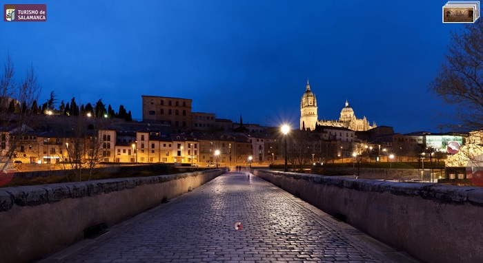 Te invitamos aquí a dar un paseo en la noche de Salamanca y conocer así algunos de sus monumentos más importantes. No faltan ni la Casa de las Conchas, ni las catedrales, ni el puente romano, ni la Universidad y ni mucho menos su Plaza Mayor, entre otros enclaves de interés. Ofrece además varias imágenes de alta resolución en las que puedes ampliar hasta ver el más mínimo detalle.