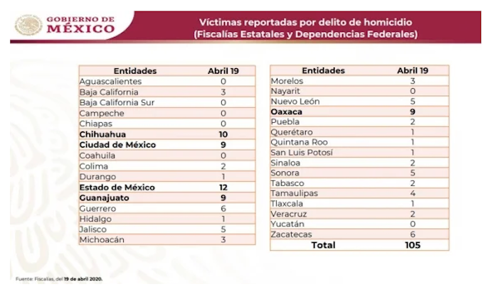 El 19 de abril fue el día más violento en lo que va de 2020. Imagen: SESNSP.