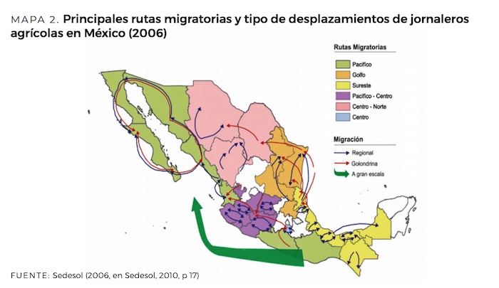 En Baja California, Sonora, Sinaloa y Baja California Sur, donde predomina la producción de hortalizas y frutas para atender el mercado de Estados Unidos, se concentra el 80 por ciento (cerca de 200 mil personas) de la población jornalera solo del norte de México. Tienen circuitos laborales con entidades del centro y sur del país, como Guerrero, Veracruz, Oaxaca, Sinaloa, Chiapas, Puebla y Guanajuato, que concentra el 46.5 por ciento de la población jornalera a nivel nacional, esto es poco más de 500 mil. En Chihuahua, Coahuila, Nuevo León, Tamaulipas y Durango domina la producción frutícola, algodonera y cañera, dimensiona el estudio.