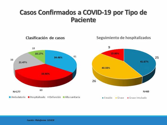 La estadística proporcionada por la Secretaría de Salud arroja que, a nivel estatal, hay 60 pacientes se encuentran hospitalizados. De ellos, 21 se encuentran estables, 35 en condición grave y 8 en condición grave entubado.