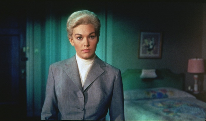 Kim Novak discutió con Hitchcock hasta la saciedad la conveniencia del tono gris y el patrón del traje con el que encarnaba a Madeleine en Vertigo, el director no cedió y la actriz reconoció, finalmente, que era el mejor modelo para encarnar a este frío personaje frente a July, que Novak también interpretaba, de carácter más explosivo, como marcaba también su vestuario.