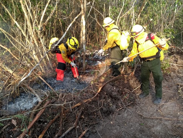 Ya de por sí abrir una brecha cortafuego en una selva es bien complicado porque hay mucha vegetación y es muy lento el trabajo manual. En el caso extremo, cuando el incendio está muy propagado en extensión, tenemos que utilizar maquinaria pesada, pero tratamos de usarla lo menos porque aunque abre una brecha muy amplia y muy segura para que no se siga propagando el fuego, el problema es que se hace una devastación importante; quedan avenidas muy grandes.