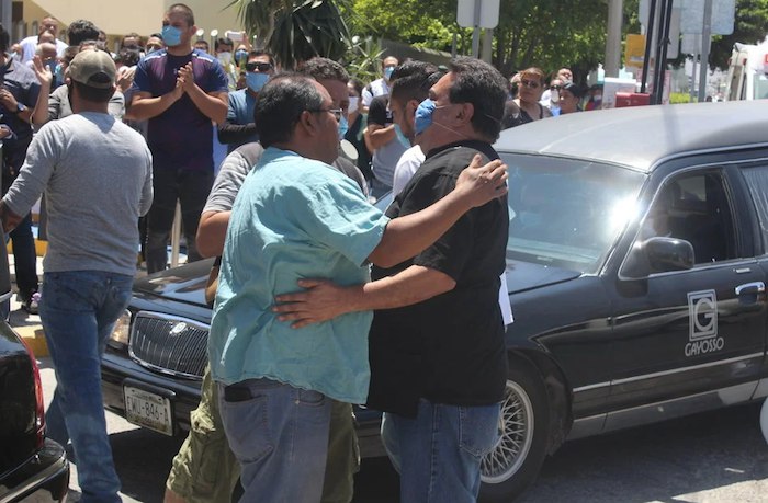Apenas llegó el cortejo, un aplauso emotivo fue entregado por los compañeros a quienes se desempeñaban como enfermera adscrita a la Unidad Familiar número 46 del IMSS Gómez Palacio en el caso de Cecy; Dora, subjefa de enfermeras de la clínica 71 del IMSS en Torreón y Aracely, Jefa de grupo de Servicios Técnicos de la Subdelegación.