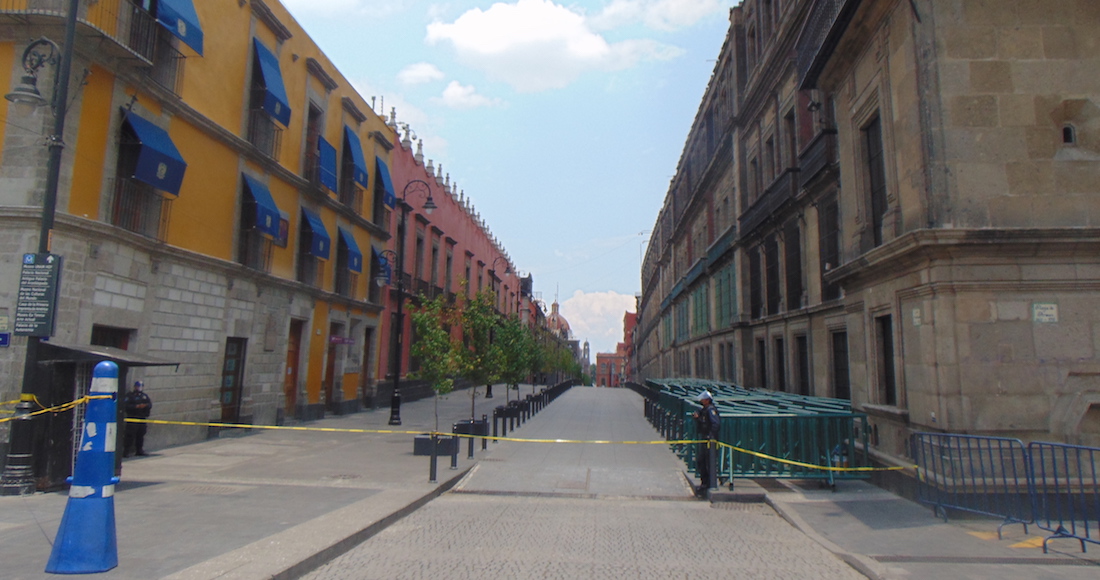 A unos metros del lugar en el que vende sus productos, la estación Zócalo del Sistema de Transporte Colectivo (STC) Metro se encuentra bloqueada. Sólo llegan hasta su puesto los que viajan en bicicleta o a pie.