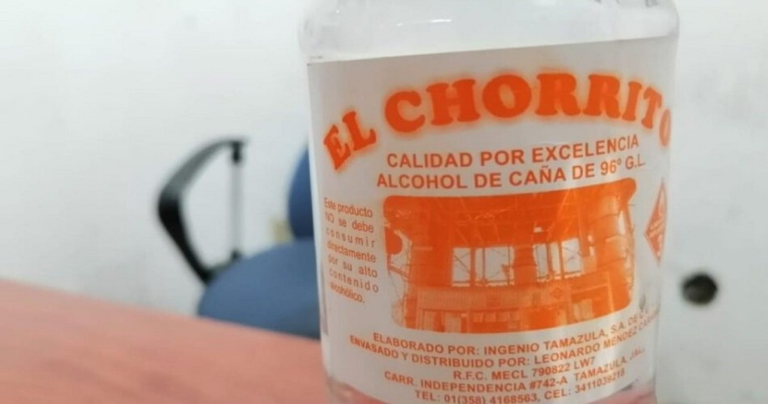 La Secretaría de Salud de Jalisco identificó que la mayoría de los casos están asociados al consumo de un alcohol de caña de 96 grados de la marca El Chorrito, cuya producción, se sospecha, ha sido adulterada con alcohol metílico (metanol).