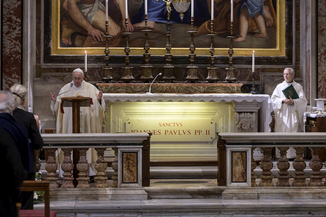 Ciudad del Vaticano, 18 may (EFE).- El Papa Francisco celebró hoy la primera misa permitida con fieles, que estuvo dedicada al centenario del nacimiento de Juan Pablo II, en la basílica de San Pedro, que también abrirá hoy a los visitantes tras 69 días de cierre debido a la pandemia de coronavirus.