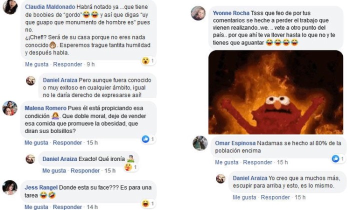 "Yo creo que es la cosa más terrible que me pueda pasar... No tanto, bueno sí, lo horripilante que me pueda llegar a ver, como una botarga, pero lo inservible que es la gente, o sea un pastelero gordo es inservible, o sea estorba, arruinan el pastel con la panza, comen todo el día, que pena, que pena decirlo pero acabo de pasar el súper horrendo, horrible, inservible", declaró el sujeto.
