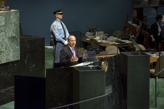 Al participar en el debate general de la 67 sesión de la Asamblea General de las Naciones Unidas, el mandatario mexicano planteó que la ONU encabece una discusión a la altura del siglo XXI que, “sin falsos prejuicios”, permita encontrar soluciones a este problema bajo nuevos enfoques.