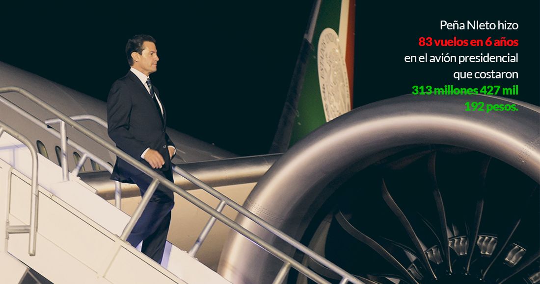 Enrique Peña Nieto realizó 83 viajes a bordo del avión presidencial que costaron 313 millones 427 mil 192 pesos. ¿Quiénes lo acompañaron? Aún no puede saberse, pero sí el costo aproximado de cada uno de esos viajes. La Presidencia de la República tiene una lista en la que se describen los gastos de hospedaje y alimentación, transporte terrestre, gastos “diversos” y de transporte aéreo.